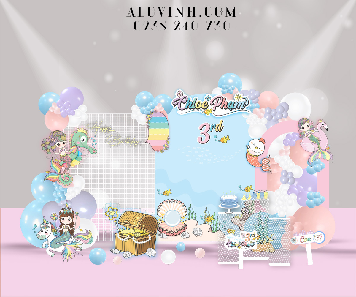 Đôn lưới caro dùng trong decor sinh nhật, thôi nôi